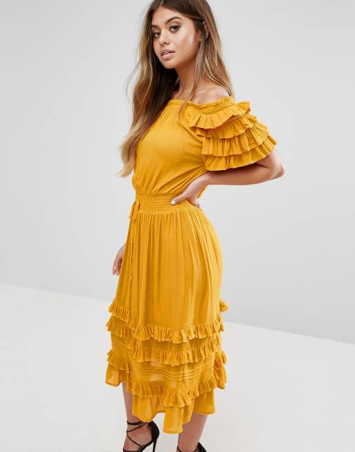 Cream woven bardot frill detail bodycon dress - Des Plaines Сlick here pictures and get coupon code !!! Best Ruffles and Frills images in | ...