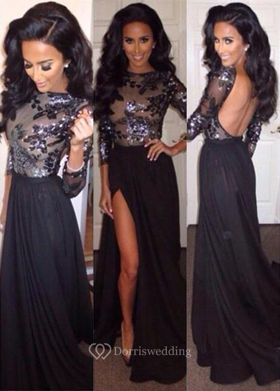 Sexy Chiffon Black Front Split Prom Dress 2016 Sequins Backless PRICE - $168.29 /piece. Sexy Chiffon Black Front Split Prom Dress 2016 Seq...